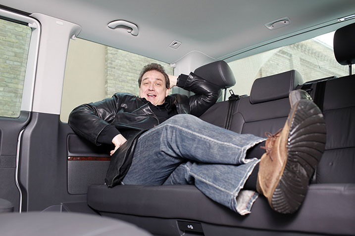 Schauspieler Peter Lohmeyer mit seinem VW Caddy