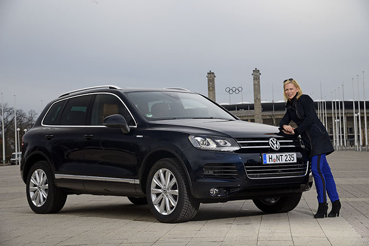 Moderatorin Tamara Gräfin von Nayhauß und ihr neuer VW Touareg, Berlin.